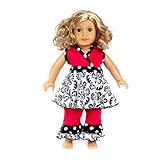 Here is an adorable doll outfit that fits 18" dolls and the American Girl Doll. This 2 pc outfit of pants and top made of black and hot pink will really give your little girl a delight. Top has hot pink with black and white polka dot trim and black/white floral pattern. Pants hot pink with polka dot and floral ruffles. Elastic waist pants, velcro back on the top. and then update cheapest prices immediately. Limited time Only!